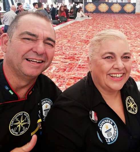 Doble récord Guinness: Del plato de jamón cortado a mano más grande y de profesionales cortándolo.